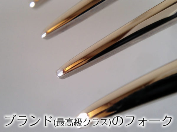カトラリーは100円ショップでもある程度のものが売られていますが、私は以前この記事(特に「違い(2)研磨」の部分)に書かれている内容を知って以来「あ、カトラリーはちゃんとお金を出して買おう」と認識が変わりました。